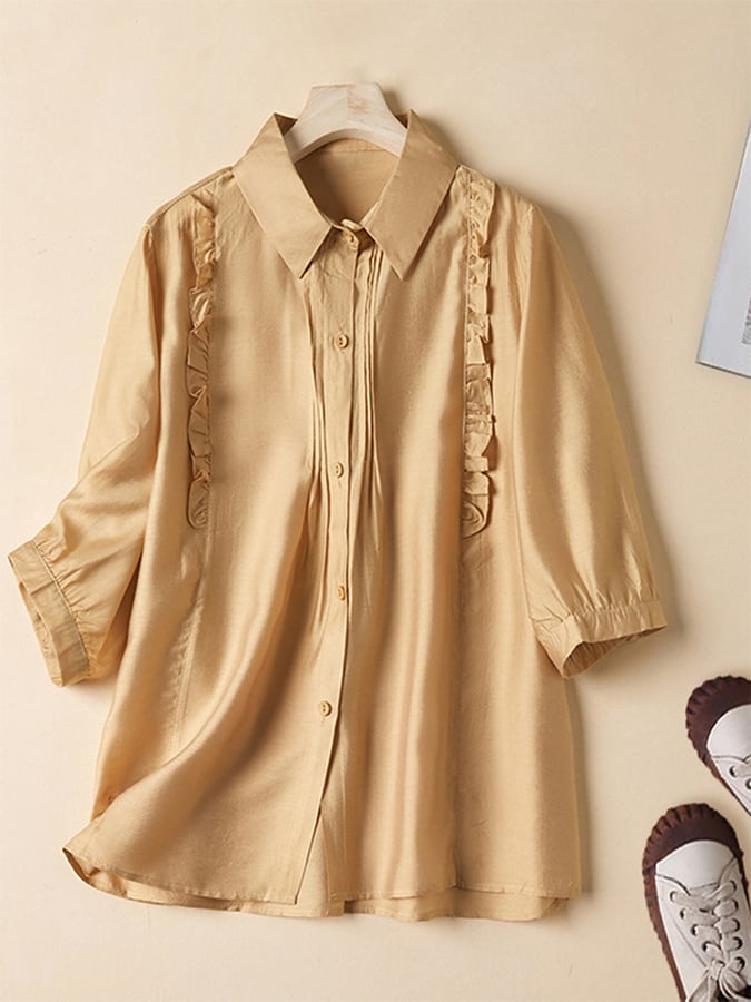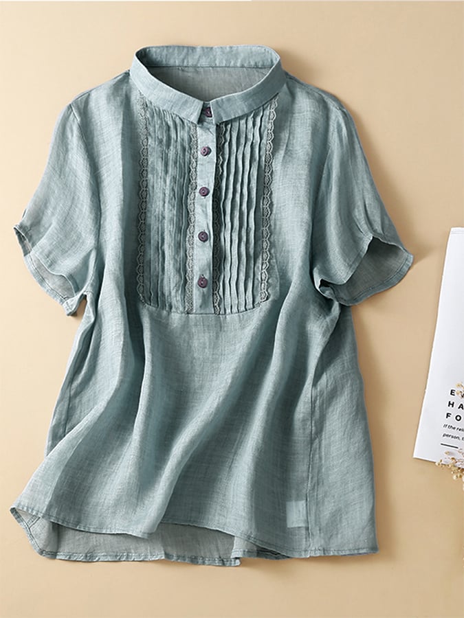 Solid Color Cotton Linen Lace Stitching Casual Shirt